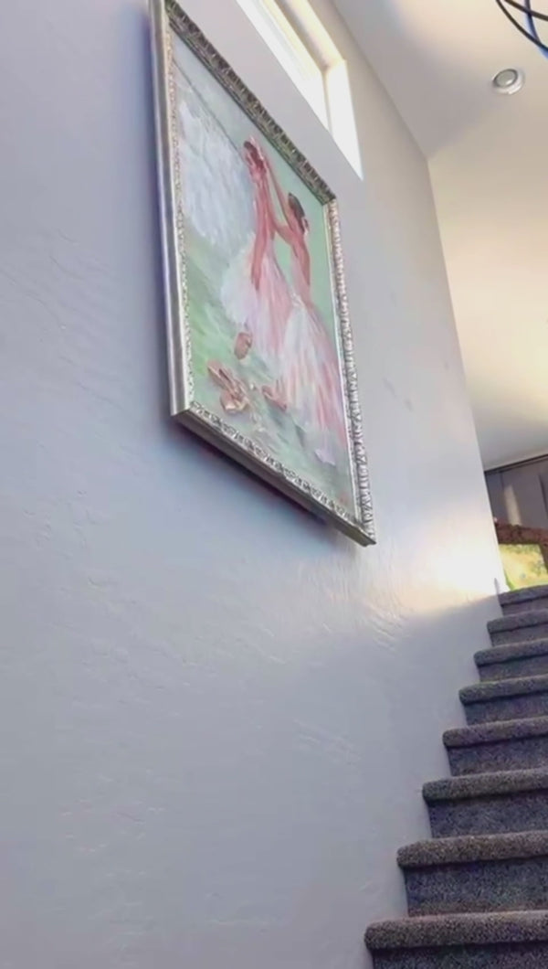 Capture the enchanting moment of 2 young ballet girls in a dressing room, minutes before the performance. The rich greenish pink colors evoke a feeling of youth and excitement. Perfect for ballet enthusiasts and young dancers, this canvas print adds a touch of elegance and artistry to any space.